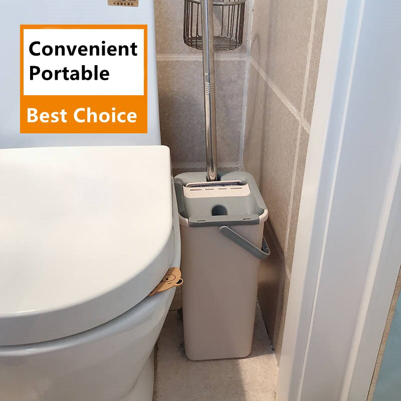 The mop and bucket with wringer set has three microfiber pads with excellent water absorption that makes it perfect for wet and dry cleaning. You can wash the mop pads in the washing machine while maintaining effective cleaning. All pieces are compact enough to fit effortlessly inside the bucket. When you don't use it, just put household cleaning tools in the corner and never worry about taking up too much space. The bucket with 2 grooves, one for clean and the other for dry. With simple up and down, 2 scraping blades will help to clean the mop or control the level of moisture quickly and effectively. This flat mop head can automatically rebound within 30 degrees without touching. It can effectively prevent dirt from getting on your hands.